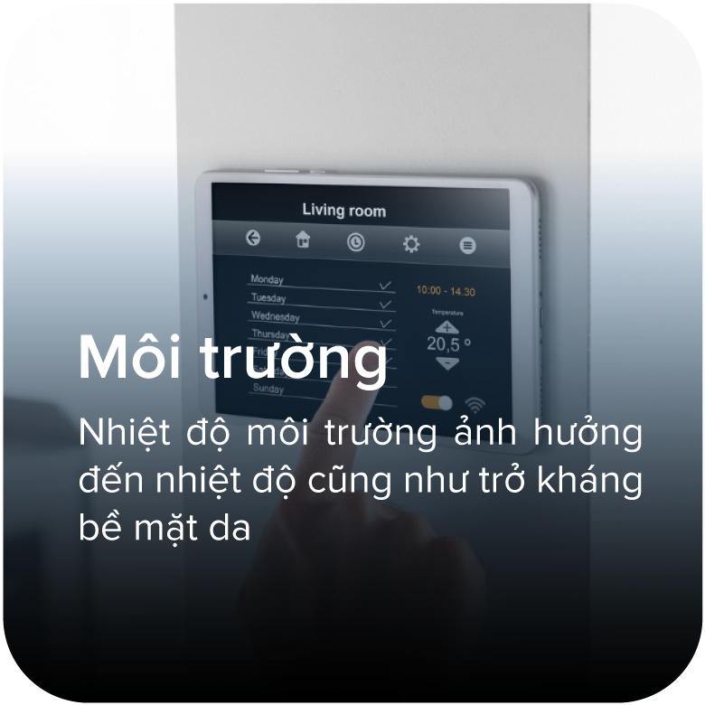 Sử dụng 2 dòng điện với tần số khác nhau để đo chỉ số cơ thể. Công nghệ 8 điểm chạm (350kHz) cho phép đo cả dịch ngoại bào, cho kết quả chính xác tới 99,89%.